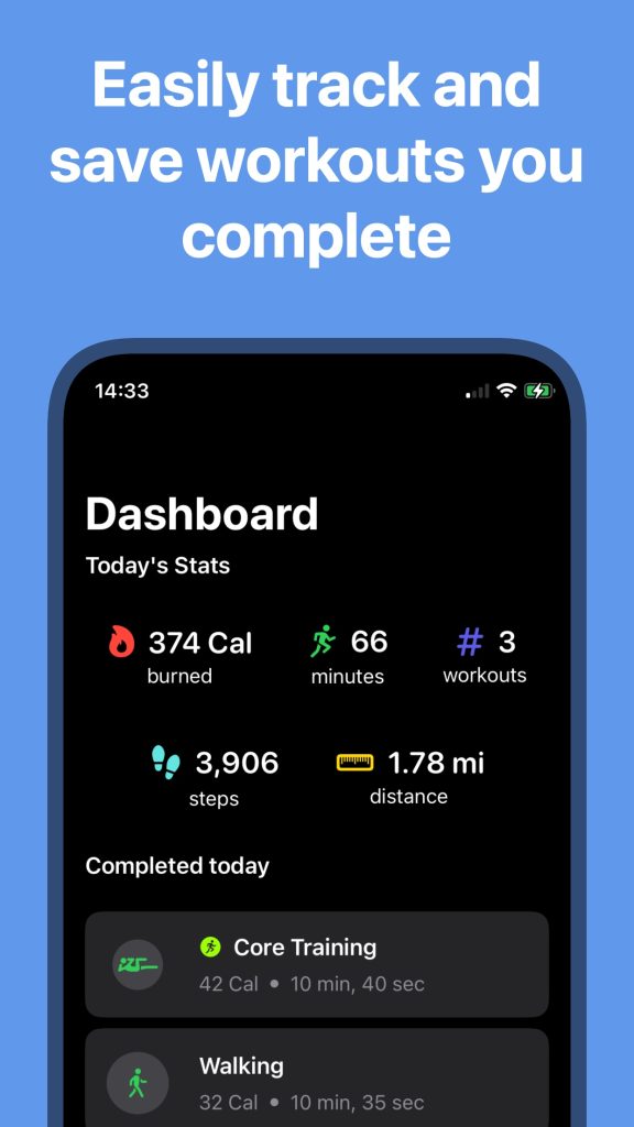 Sync seamlessly with HealthKit for a holistic view of your workouts.